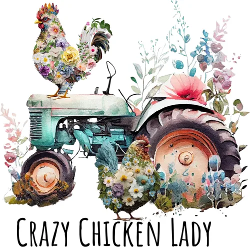 Crazy Chicken Lady Tractor Transfer transferencia de sublimación de granja transferencia de sublimación de pollos Chicken Lover Transfer Floral Chickens Transfer