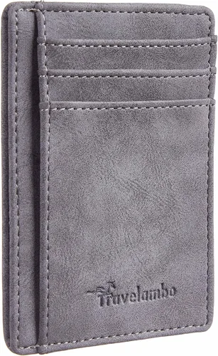 Travelambo Cartera delgada con bolsillo frontal de cuero minimalista con bloqueo RFID tamaño mediano, Crazy Hose Gris, Minimalista
