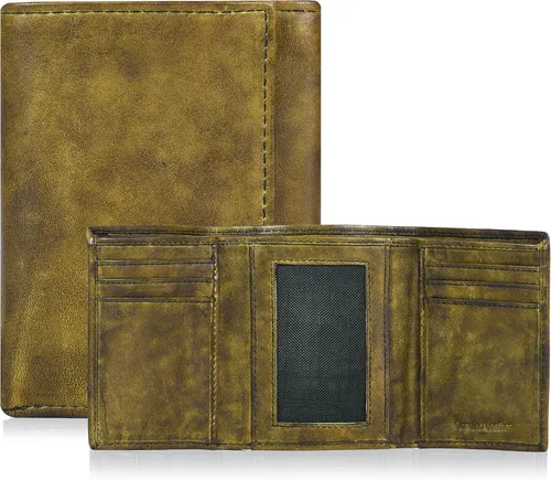 Tri fold Leather Wallet for Men with RFID Slim Wallets for Men with 1 ID and 6 Credit card slots Front Pocket Minimalist Gift