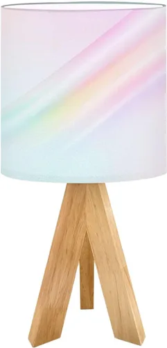Tripod Bedside Desk Table Lamp Minimal Fluid Gradient Blurred Wave Pastel Color Earth Tone Green Pink Wood Nightstand Lamp with Linen Fabric Shade