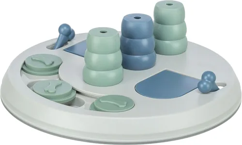 SUBIENDO DE NIVEL: Los rompecabezas de comida para perros de nivel 2 de TRIXIE ofrecen más desafíos para perros inteligentes al incorporar más obstáculos y combinar acciones para que tu cachorro gane sus sabrosos premios—jugadores intermedios que ya dominan los rompecabezas de nivel 1. Estimulación mental: 15 minutos de estimulación mental equivalen a 30 minutos de ejercicio físico; los juguetes de rompecabezas de alimentos TRIXIE estimularán la mente de tu cachorro para mejorar la salud mental y la confianza de tu perro, aliviar el estrés y eliminar los malos comportamientos Diversión de enriquecimiento: para cachorros con patas grandes también pueden divertirse, se levantarán, girarán y deslizarán para buscar y oler sabrosas golosinas; el aprendizaje basado en recompensas reforzará el comportamiento positivo; tu perro sentirá una sensación de logro y satisfacción Seguridad para cachorros: los juguetes interactivos para perros TRIXIE Dog Activity están diseñados pensando en la salud de tu mascota, comenzando con materiales seguros y confiables que son libres de BPA, ftalatos y plomo; fáciles de limpiar entre usos con agua tibia y jabón, y aptos para lavavajillas Deliciosas golosinas: el buen comportamiento y la curiosidad de tu cachorro serán recompensados. Los juguetes de rompecabezas TRIXIE incluyen consejos de entrenamiento para ayudar a fortalecer tu vínculo con tu mascota; Por favor, recuerda nunca dejar juguetes con mascotas sin supervisión, ningún juguete es indestructible