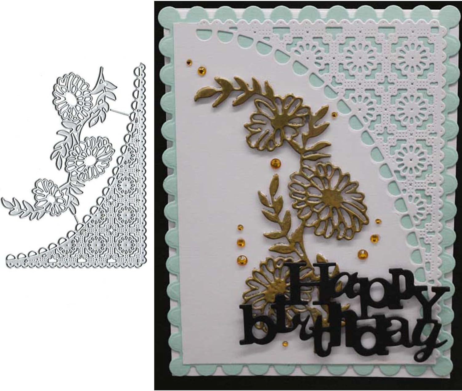 Flwoer - Plantillas de corte con borde de encaje para boda, troqueles de metal en esquina, troqueles de corte de hojas para manualidades, tarjetas