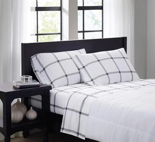 Sábanas y Fundas de Almohada de la marca TRULY SOFT con queen - Colección de ventanas impresas - Blanco/Gris carbón