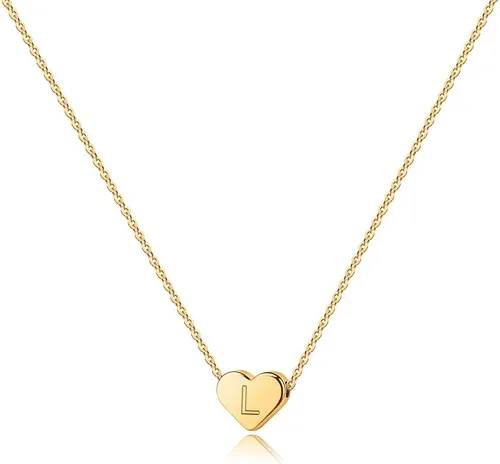 Turandoss Collar con inicial de corazón para mujeres y niñas, delicado chapado en oro de 14 quilates, dije de corazón con letra A-Z, collar con
