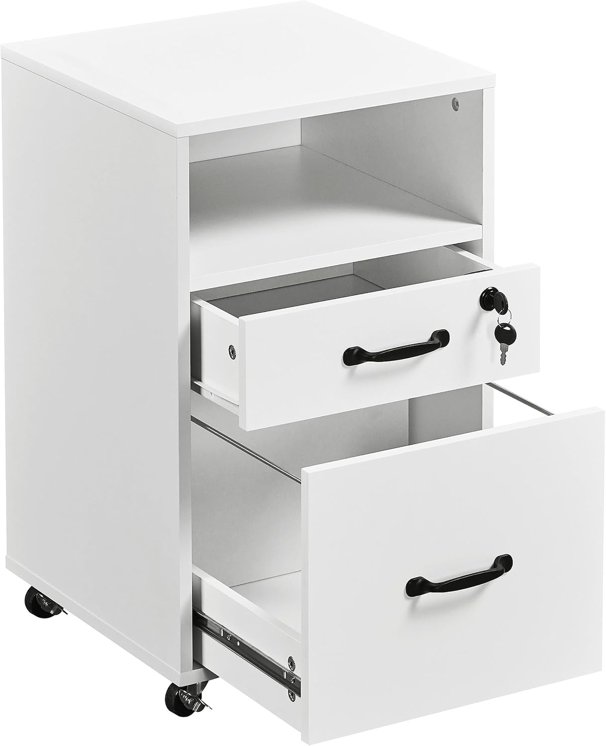 Topeakmart Archivador con 2 cajones y 1 estante abierto, soporte para impresora de almacenamiento con ruedas para A4/Legal/Letter 16″ L × 16″ W ×