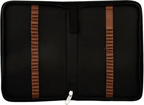 Bien hecho, elegante y ligero para mantener tus lápices organizados y portátiles La funda se abre plana para un fácil acceso al contenido y cuando estés listo para seguir adelante, simplemente cierra la cremallera de nuevo Los lápices están asegurados con una tira elástica marrón Los compartimentos individuales protegen y pueden contener hasta 48 de tus lápices de dibujo favoritos y un borrador Tamaño de la caja: 11.4 x 7.6 x 1.4 pulgadas (lápices no incluidos)