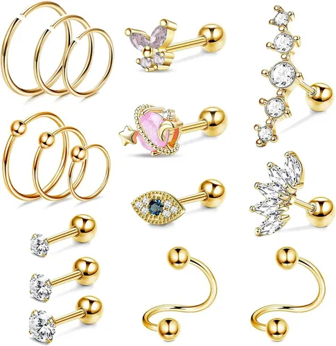 UBOORY Aretes de cartílago, aretes hipoalergénicos, joyería de piercing para tragus, aretes de daith, aretes de hélice, joyería de piercing de
