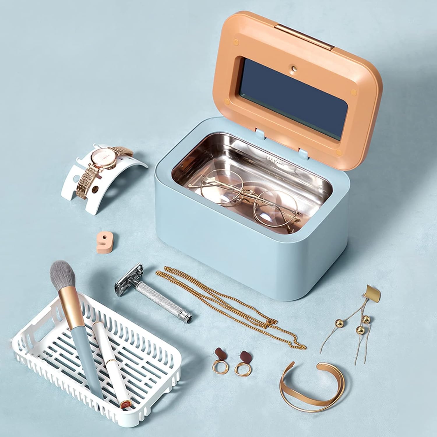 Máquina Limpiadora de Joyas Ultrasónica BYASKZIV, Limpiador Ultrasónico Mejorado de 48KHz con Acero Inoxidable 304 para Joyas, Lentes, Anillos, Rosa