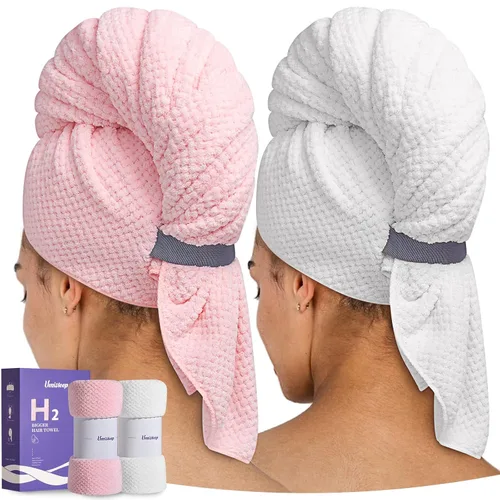 Umisleep Toalla de microfibra extra grande para mujer, cabello rizado, largo y grueso, paquete de 2 toallas de secado de cabello ultra absorbentes,