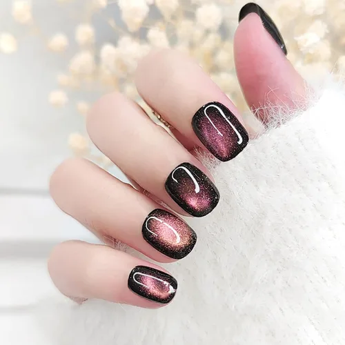¿Para qué sirve Uñas cortas a presión, uñas postizas cuadradas con diseño de ojo de gato rojo, uñas postizas con pegamento brillante, uñas acrílicas de cobertura?