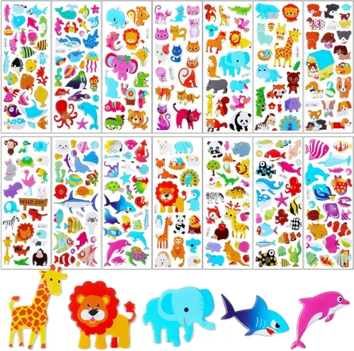 UPINS 200 hojas de calcomanías pequeñas hinchadas de animales 3D a granel para niños pequeños, libros de calcomanías de espuma para niños