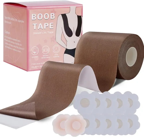 95% algodón y 5% licra Imported Alta calidad: cinta adhesiva de grado médico resistente al agua y mezcla de 95% algodón que es libre de látex e hipoalergénica, se puede llevar todo el día sin irritación. Podrías hacer una prueba si hay alguna alergia en la primera vez. Adhesión correcta: las cintas para pezones se mantendrán unidas al cuerpo, pero no demasiado fuertes para quemar tu piel. La cinta de levantamiento de senos respira y se estira contigo, incluso mientras bailas toda la noche, te bañas en la piscina o haces ejercicio. Gran elevación de senos: la cinta del sujetador sostiene bien a tus niñas y te hace lucir encantadora. Gran valor de 1 cinta de brasier (1 rollo de 4 x 16.5 pies) con 1 par de almohadillas reutilizables de silicona para pezones y 5 pares de pétalos de tela desechables. Fácil de usar: nuestra cinta adhesiva para el pecho es fácil de aplicar y quitar, simplemente corta tu longitud adecuada y despega, se recomienda quitarla con cuidado y paciencia utilizando agua tibia y aceite. No se recomienda usar el producto durante más de 12 horas; no aplicar sobre piel irritada, quemada por el sol o sensible. Variables ocasiones: perfecto para bodas, fiestas, vacaciones y esos días regulares en los que no tienes ganas de usar un brasier, pero aún quieres el aspecto y el apoyo. Aspecto muy natural, invisible y sin costuras, grandes cintas para vestido sin tirantes, vestido de corte bajo, etc.