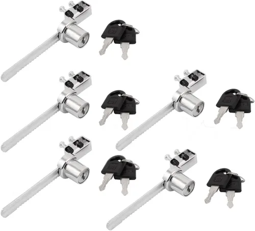 Material principal: Metal; Contenido del paquete: 5pcs x cerradura del escaparate, 10pcs x llave, algunas piezas de instalación; Nombre del producto: cerradura del escaparate Peso: 10.09 oz; Color principal: Tono plateado; Tamaño total: 120 x 26 x 38 mm / 4.7 "x 1" x 1.5" (L* W* H) Tamaño de la culata: 18 x 17 mm / 0.7 "x 0.67" (D* H); Longitud total: 120 mm / 4.7" Tamaño de la parte de la sierra: 3.740 in; apto para espesor de cristal: 0.472 in Diámetro del orificio de montaje: 0.157 in. Distancia del orificio de montaje: 0.472 in