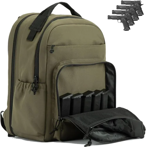 MÁTERIAL: Tela de mochila de campo de tiro usando nylon 1200D, tela de forro de bolsa de armas usando poliéster 210D encriptado SEGURIDAD: El compartimento grande del morral para pistola se usa con un agujero de cerradura y una cremallera doble a prueba de explosiones. Los bolsillos laterales y las bolsas para gafas de la mochila para pistola utilizan cremallera sellada a prueba de polvo. Maximice la seguridad de la funda para pistola ESTRUCTURA MÁS RAZONABLE: Los bolsillos exclusivos separados para pistolas pueden almacenar hasta 4 pistolas de tamaño completo. El gran compartimento del bolso tipo pistola puede guardar fácilmente todos los artículos para el entrenamiento. El bolsillo frontal de la bolsa para armas puede almacenar 6 cargadores de pistolas. Mochila táctica Se ha añadido una bolsa separada para guardar gafas. Dos bolsillos laterales para satisfacer diferentes necesidades, la parte trasera del estuche para armas tiene un bolsillo oculto para dinero COMODIDAD: Las correas de la espalda y los hombros de la mochila para pistola están procesadas con malla de panal y algodón engrosado de acuerdo con los requisitos especiales de comodidad humana y fatiga del hombro, haciendo que el proceso de uso de esta bolsa para campo de tiro sea más relajado y cómodo COMPRA CON CONFIANZA: Ofrecemos servicio al cliente completo las 24 horas, si encuentras algún problema, puedes proporcionar retroalimentación directamente, si no estás satisfecho, no te gusta, puedes devolverlo directamente. Proporcionamos una garantía de 12 meses para toda nuestra gama de mochilas