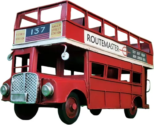Modelo vintage de autobús de Londres: este modelo retro de autobús turístico de dos pisos de Londres cuenta con una parte superior abierta y un color rojo clásico. Es una réplica de un autobús vintage, que añade un ambiente hermoso y elegante a tu hogar u oficina. Decoración vintage: este bonito autobús de metal rojo vintage se verá perfecto en cualquier juego de autobús. También puedes despacharlo en tu mesita de noche, tocador o escritorio, esta pieza hecha a mano en hierro captura de manera realista el icónico autobús de dos pisos en todo su esplendor Diseño detallado: este modelo de autobús de dos pisos está hecho de materiales metálicos de alta calidad, con exquisitas tallas y un estilo retro. El modelo de autobús está cuidadosamente diseñado, con un aspecto delicado y detalles finos, por lo que es una decoración perfecta para cualquier habitación de tu hogar u oficina. Regalo ideal: el modelo Red London Bus es el regalo perfecto para cualquier amante de Londresphile o autobús, y sería una excelente opción para regalos en Navidad y Año Nuevo. Tamaño: 10 pulgadas de largo x 4 pulgadas de ancho x 5 pulgadas de alto.