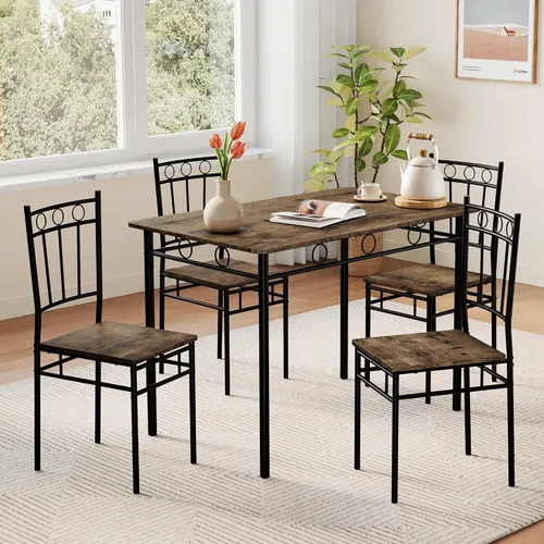 Vipbear Juego de mesa de comedor de cocina para 4, juego de mesa de cocina de 5 piezas, juegos de mesa de comedor, juego de mesa de cocina