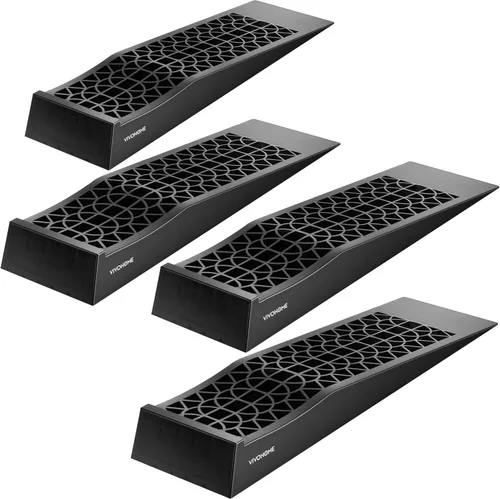 Solución de servicio para automóvil: las rampas de servicio de automóvil VIVOHOME (juego de 4 piezas) proporcionan una solución ideal para propietarios de vehículos y equipos de carreras que se ocupan de una distancia al suelo baja, ofreciendo una manera práctica y confiable de mostrar, inspeccionar o realizar reparaciones en automóviles, SUV, camionetas y camionetas con facilidad; ya sea que estés detallando un auto de exhibición o realizando controles del motor, estas rampas ahorran tiempo y esfuerzo al eliminar la necesidad de herramientas de elevación engorrosas INCLINACIÓN de 9.05°: con un suave ángulo de carga de 9.05°, estas rampas proporcionan un acceso más suave y seguro que los gatos de carro tradicionales y los elevadores hidráulicos para vehículos de perfil bajo; elevan tu vehículo en 2.75 pulgadas, creando un amplio espacio para cambios de aceite, inspecciones o trabajos de mantenimiento básicos; esta inclinación de ángulo bajo garantiza un riesgo mínimo de raspado del tren de rodaje durante el ascenso Diseño de ingeniería: diseñadas con una estructura de canal de panal de abeja, las rampas permiten un drenaje inmediato de agua, aceite y desechos para mantener una superficie limpia y segura; la plataforma de rampa ampliada acomoda fácilmente neumáticos de gran tamaño, ofreciendo un área de contacto mejorada para una mayor estabilidad durante el uso; La superficie texturizada mejora el agarre y reduce la posibilidad de deslizamiento de los neumáticos durante el ascenso Plástico resistente: fabricadas con polipropileno reforzado (PP) de alto impacto, estas rampas ligeras ofrecen una resistencia y durabilidad excepcionales; cada rampa soporta hasta 3300 libras/1,5 toneladas, con una capacidad total combinada de 13200 libras/6 toneladas, lo que las hace adecuadas para una amplia gama de vehículos y tareas de servicio; A pesar de su rendimiento robusto, las rampas son fáciles de transportar, apilar y tienda Garantía de seguridad: la ranura curva en la superficie superior de la rampa ayuda a acunar los neumáticos de forma segura, reduciendo el riesgo de deslizamiento; los pies antideslizantes en la base aseguran que las rampas permanezcan firmemente en su lugar en pisos de concreto lisos, ideal tanto para garajes personales como para entornos de servicio automático profesionales; las rampas se mantienen estables incluso bajo aplicaciones de alto par o presión desigual de los neumáticos