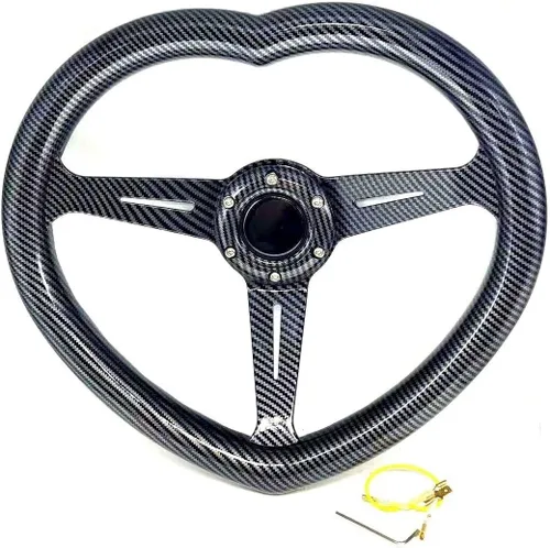 Se adapta universalmente a cualquier adaptador de cubo de carreras estándar de 6 pernos, PCD de 2.756 in Se adapta a la mayoría de los tipos de kit de jefes del Hecho de material ABS de alta calidad con acabado de fibra de carbono Diámetro: 13.386 in aprox Profundidad: 2.953 in aproximadamente Color: Estilo de fibra de carbono la forma del corazón Mejora el aspecto VIP para tu vehículo Reemplazo directo, no necesita modificaciones. Botón de bocina incluido Alambre de bocina y tornillos incluidos
