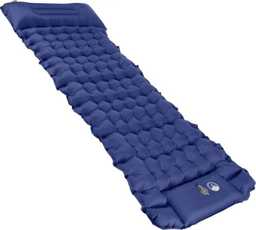 Colchoneta inflable para dormir: obtén una gran noche de sueño dondequiera que la aventura te lleve con este colchón inflable de campamento. Esta cómoda pero compacta colchoneta de dormir se infla hasta 3 pulgadas de grosor y cuenta con una almohada integrada en la parte superior para mayor comodidad. Bomba de pie integrada: esta alfombrilla de campamento se infla en minutos al subir y bajar en la bomba de pie, por lo que no hay necesidad de empacar una bomba de aire voluminosa en tu equipo de mochilero. Es perfecto para cualquier lugar, desde campamentos rústicos hasta picnics de verano o días de playa. Compacta y ligera: esta colchoneta de dormir autoinflable se pliega en un paquete compacto, e incluye una bolsa de almacenamiento para una fácil portabilidad. Utilízalo solo para una sola persona o conecta dos con los botones laterales integrados para crear una cama de campamento más grande. Duradero y resistente al agua: en Wakeman Outdoors, sabemos que tus suministros de campamento deben construirse resistentes para resistir los elementos. Este colchón de aire impermeable para acampar está hecho de nailon duradero y poliuretano termoplástico para soportar el uso en exteriores. Detalles del producto: Materiales: nailon 40D y TPU. Dimensiones: 77 pulgadas de largo x 27 pulgadas de ancho x 3 pulgadas de alto. En la caja: 11.81 pulgadas de largo x 4.72 pulgadas de ancho. Peso: 1.76 libras. Color: azul.
