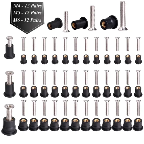 MATERIAL DE CALIDAD: Juego de tuercas roscadas de neopreno M4/M5/M6 de alta resistencia hechas de nuez de latón de goma, vienen con tornillos de acero inoxidable M4 M5 M6 de tamaño coincidente. Tuercas para kayak M4 M5 M6 con buena resistencia a la oxidación y corrosión para un uso prolongado, Juegos de surtidos de tuercas y pernos M4/M5/M6 cada 12 pares: el conjunto surtido de tuercas de parabrisas incluye M4/M5/M6 (cada tamaño 12 pares de tuercas y tornillos), aplicabilidad superior excelente para motocicletas, kayaks, canoas, barcos y otras aplicaciones marinas o al aire libre para fijar carenados de plástico, la tuerca de pozo de latón M5 también se usa en aplicaciones industriales y científicas JUEGO DE TUERCAS DE LATON: Tuerca métrica desmontable adecuada para múltiples propósitos, el surtido de tuercas m5 puede lograr una mejor absorción de impactos y resistencia a los golpes, las tuercas de neopreno M4 M5 M6 con tornillos funcionan para muchas aplicaciones industriales, hardware funcional para parabrisas y tuercas de inserción convenientes TUERCA M5 FÁCIL DE USAR: Simplemente coloca la tuerca inserta en el agujero y aprieta hasta que la brida esté firmemente contra la superficie de montaje, también puede reemplazar el clip de los remos de kayak. Perfecto útil accesorio de kayak Tuercas hexagonales Tuercas de brida, tuercas de pozo de kayak M4 con tornillos Kit de tuercas de pozo de goma, tuerca de pozo m4 tuerca de pozo m5 tuerca de pozo m6 Esfuérzate para ayudar: Confirme las especificaciones que necesita antes de comprar tornillos para kayak. Si te gustaría saber más sobre este Juego de Tuercas de Neopreno, nos gustaría abordar cualquier preocupación que tengas de inmediato. WEDAMER se esfuerza por ayudar con cualquier problema sobre nuestros productos Juegos de surtidos de tornillos y pernos