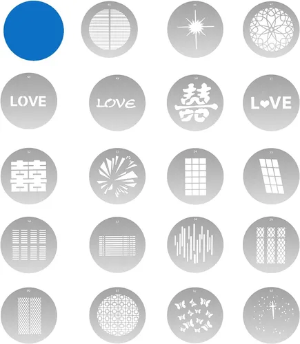2.3 pulgadas de diámetro Hacer que las imágenes fotográficas sean más creativas e interesantes. 19 gobos y un filtro rojo incluido.