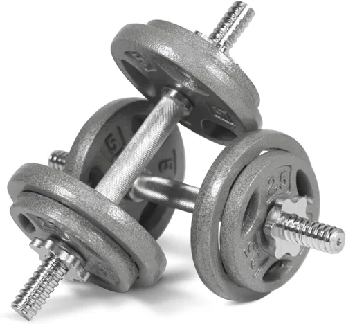💪 El juego de pesas ajustables incluye – 37 libras. Total: dos mangos de mancuernas de 14 pulgadas, cuatro platos de 5 libras, cuatro platos de 2.5 libras y cuatro collares de bloqueo de estrella. Las barras roscadas estándar hechas de acero sólido para placas de diámetro de 1 pulgada son perfectas para un entrenamiento de fuerza en el gimnasio en casa. Las placas de hierro fundido hechas de material de alta calidad son muy resistentes y duraderas, y el juego de placas incorporadas te proporciona un entrenamiento flexible para ajustar el peso de las mancuernas o pesas de acuerdo a tus necesidades. 💪 Barra compacta con agarre antideslizante: la barra es compacta y práctica para cualquier principiante, profesional, cuenta con una barra de acero cromado sólido con extremos roscados para un agarre seguro, firme y antideslizante. Estas moleteras no solo aumentan la fricción y las propiedades antideslizantes, sino que también son útiles para encontrar con precisión el posicionamiento de la mano y el cuerpo cuando se trata de centrarse en una barra. Garantiza tu seguridad y una experiencia de usuario cómoda. 💪 Fácil ajuste con juegos de placas de peso: los platos estándar tienen un agujero central de 1 pulgada para adaptarse a barras estándar, están hechas de hierro fundido duradero y recubiertas con un acabado de esmalte gris horneado para evitar que se astillen y se pelen para un uso de por vida. Es una herramienta ideal para un entrenamiento eficaz, tanto para combinar con barra como para hacer ejercicio con una sola placa de peso. El diseño de agarre de 3 agujeros te permite cambiar los pesos fácil y rápidamente, juegos de platos de 30/40/50/60/70/90 libras disponibles para satisfacer tus necesidades. Extremos y collares roscados seguros: el juego de pesas está diseñado como extremos roscados y equipado con 2 collares de bloqueo de estrella para evitar que las placas se deslicen. Moleteado de diamante de profundidad media para un agarre seguro y antideslizante al hacer ejercicio. Proporciona estabilidad, entrenamiento seguro y cambios de placa de peso fáciles. 💪 Complemento perfecto para tu gimnasio en casa: realiza un entrenamiento corporal total en la comodidad de tu propia casa. Entrenamientos como sentadillas, peso muerto, filas, press de banca, limpias, etc. proporcionará resultados rápidos y efectivos. Construye músculos en los brazos, hombros y de vuelta a la barra de elevación. Puedes cambiar la intensidad de tu entrenamiento alternando agarres que agregan resistencia a tu rutina de entrenamiento ayuda a construir masa mientras acelera los esfuerzos de pérdida de peso.