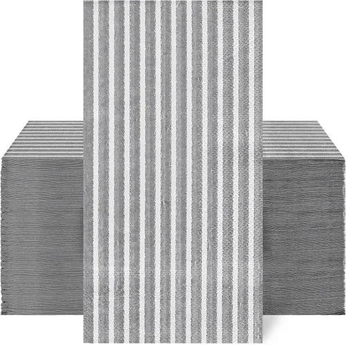 Whaline Paquete de 100 servilletas desechables a rayas grises y blancas para invitados, paquete de papel a rayas, toalla de mano para boda, baby