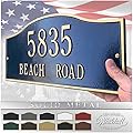Después de su compra, nuestros amables representantes con sede en Estados Unidos le enviarán un diseño de diseño para su aprobación. La línea superior puede mostrar hasta 5 números. La línea inferior puede contener hasta 17 caracteres Se incluyen dos filetes para montar en tu césped o paisajismo Hecho de aluminio recubierto duradero, cualquier clima/clima, no se oxida. La placa mide 17 x 9.5 x 1.25 pulgadas. Se incluyen dos estacas de 18 pulgadas.