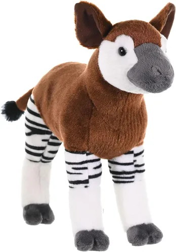 The okapi (pronounced oh-COP-ee) is an unusual creature that no other can copy! In nature, the Okapi is around 5 feet tall—approximately the same size as a horse—but the okapi stuffed animal by Wild Republic measures up at 12 inches. Okapis have extremely long tongues to assist them with foraging and bathing, but your okapi plush toy was made surface-washable for easy cleaning, minus the okapi tongue bath. Scientists did not even know of this anti-social animal until 1900, but the okapi stuffed animal by Wild Republic is not nearly as elusive! This rainforest-dwelling animal would make a great gift for all ages as well as an excellent addition to your science classroom. Okapis are solitary animals in the wild, but this plush toy is ready to be your cuddling companion today. Wild Republic has been developing animal plush and educational toys for kids of all ages since 1979, with a unique specialization in realistic stuffed animals.