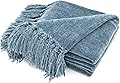 RECYCO Manta Suave y Acogedora Manta de Chenilla con Flecos de Borlas para Sofá, Sillón, Silla, Cama, Sala de Estar, Regalo (Azul Polvoriento, 50''