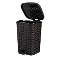 Superio Mini bote de basura con pedal de pie, pequeño bote de basura para exteriores con tapa, cesta de basura de plástico de 1.5 galones para baño,