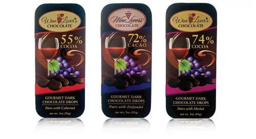 Gotas de chocolate negro gourmet prémium para combinar con vinos tintos Par de gotas de chocolate negro 55% con Cabernet 68% de gotas de chocolate negro par con merlot Par de gotas de chocolate negro 72% con Zinfandel