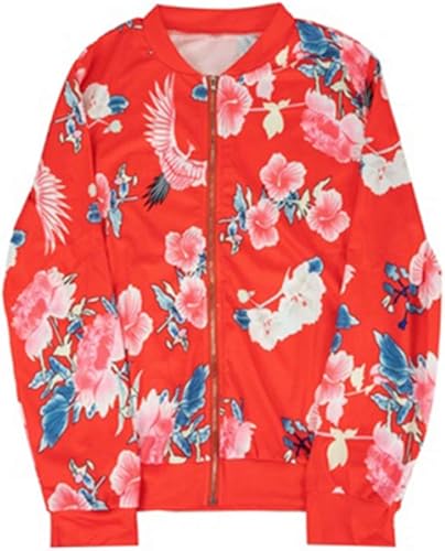 Women Casual Floral Bomber Jacket - Lightweight Zip up Flower Pattern Jacket