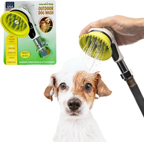 Wondurdog Boquilla de manguera de jardín para lavado de perros al aire libre para baño y enjuagues rápidos de patas. Mango protector contra