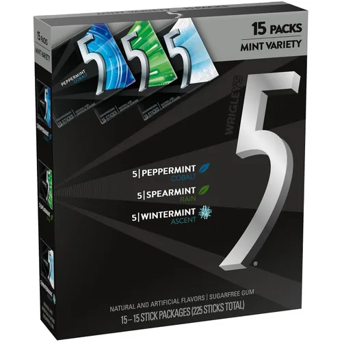 INVIGORADOR SABOR MENTA: Disfruta del sabor de la goma de menta, la goma de menta verde y la menta invernal para una sensación en boca fresca y crujiente ALIENTO FRESCO DE LARGA DURACIÓN: Mantén tu aliento fresco y a menta en cualquier momento y lugar con nuestra variedad de paquetes de goma de mascar, ideal para mantener la frescura diaria PAQUETE A GRANEL CONVENIENTE: Con 15 paquetes de chicle, tendrás constantemente un pedazo de tus sabores favoritos de menta 5 GUM cuando necesites un impulso refrescante sobre la marcha FÁCIL DE LLEVAR: Lleva contigo un paquete de 5 GUM, ideal para mantenerte fresco en movimiento. Ya sea para reuniones o viajes, este paquete de goma de mascar a granel proporciona aliento fresco AUMENTO DE CONFIANZA: Siéntete revitalizado con los sabores de goma de mascar de menta sin azúcar