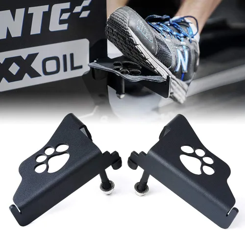 Confort de conducción sin puertas - Experimenta la sensación liberadora de la experiencia de conducción sin puertas con estos cómodos reposapiés. Relájate y siente la brisa, mientras muestras el diseño exclusivo de la insignia para un toque de estilo único. Construcción prémium: los reposapiés JK están fabricados de acero inoxidable con un recubrimiento en polvo negro mate para mayor durabilidad. Cuenta con parachoques de goma para protección de pintura y diseño soldado de una sola pieza para mayor durabilidad. Diseño de tira antideslizante - Evita el deslizamiento, especialmente en condiciones de barro o humedad, con el diseño de tira antideslizante para los reposapiés de las puertas. Aproximadamente 10 mm de diámetro de rosca asegura un punto de apoyo seguro en los lados del conductor y del pasajero delanteros. Instalación sin esfuerzo - No se necesitan taladros ni modificaciones. Se monta directamente en la bisagra de la puerta inferior, se integra perfectamente con el panel de apoyo del reposapiés para una configuración sin complicaciones. Inicialmente, puede ser necesaria una llave para la eliminación de la puerta. Compatibilidad: compatible con modelos Jeep Wrangler JK 2DR y JKU 4DR 2007-2018 sin puertas. Nota: Es posible que se requieran tuercas ajustadas para fijar los reposapiés en ciertas posiciones.