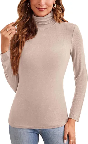 XSRYT Women Long Sleeve Mock Turtleneck Lightweight Ribbed Knit Shirts Underscrub Pullover Tops