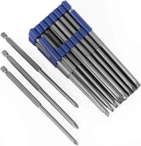Ideal para herramientas eléctricas: no solo puedes utilizar las brocas en herramientas manuales, puedes insertarlas fácilmente en cualquier taladro eléctrico de vástago hexagonal de 1/4 pulgadas para usar Construcción resistente: las brocas están hechas con acero S2 de durabilidad fortima que soporta múltiples usos en entornos regulares e incluso industriales Amplia aplicación: estas brocas son ideales para tus proyectos de hogar, trabajos de tienda, trabajos de contratista, reparaciones de automóviles, reparaciones de electrónica, etc Fácil almacenamiento: la bandeja duradera incluida mantiene cada mango firmemente en su lugar y ofrece un transporte rápido y fácil almacenamiento Se adapta a vástagos hexagonales universales de 1/4 de pulgada y el juego incluye: 9 piezas Torx Tamper: T8, T10, T15, T20, T25, T27, T30, T35, T40 | 6 piezas de manipulación hexagonal: 2, 2.5, 3, 4, 5, 0.236 in | 4 piezas Tri-Wing: #1, #2, #3 , #4 | Llave inglesa de 4 piezas: 4, 6, 8, 0.394 in | 3 brocas de torsión: 6, 8, 0.394 in | 3 unidades Pozi Drive: PZ1, PZ2, PZ3 | 2 piezas Philips: #1, #2 | 1 pieza ranurada: 0.236 in