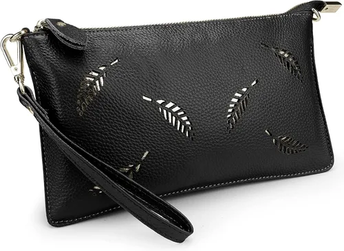 YALUXE Clutch Wristlet - Cartera de piel auténtica con bloqueo RFID y cadena de hombro