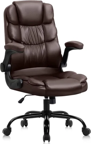 👍 Diseño ergonómico para máxima comodidad: nuestra silla cuenta con un respaldo grueso y cojín que se adapta a tu columna vertebral y cuerpo, evitando dolores de espalda y molestias por estar sentado durante mucho tiempo. Materiales de alta calidad para mayor durabilidad y estilo: nuestra silla ejecutiva está tapizada con material de poliuretano cuidadosamente seleccionado que es impermeable y resistente a las manchas, y rellena con acolchado de esponja de alta densidad para un aspecto de cuero natural que añade un toque de elegancia a cualquier oficina. 👍 Prácticos reposabrazos abatibles: nuestros reposabrazos mejorados son más resistentes, más duraderos y están cubiertos con una amortiguación más gruesa para minimizar la fatiga del brazo. Además, se pueden voltear y empujar fácilmente debajo de la mesa para ahorrar espacio cuando no están en uso. Base de silla estable y resistente: nuestra base de silla está hecha de material de nailon superior y optimizada en estructura y grosor para una máxima estabilidad y durabilidad, soporta hasta 280 libras. Satisfacción garantizada: Respaldamos la calidad de nuestros productos y ofrecemos reemplazo gratuito o garantía de devolución de dinero para cualquier problema de calidad en un plazo de 30 días. También proporcionamos reemplazo gratuito para piezas dañadas o faltantes dentro de los 14 meses posteriores a la compra. Contáctenos para una experiencia de compra sin complicaciones.