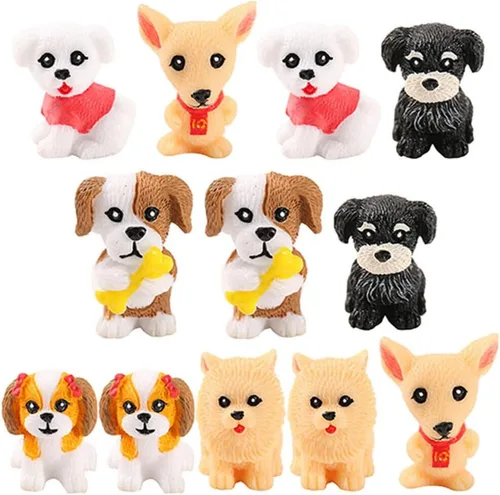 Yardwe 12 figuras miniatura para cachorros, mini estatua de perro de resina, adornos de perro de dibujos animados, modelo de perro pequeño para