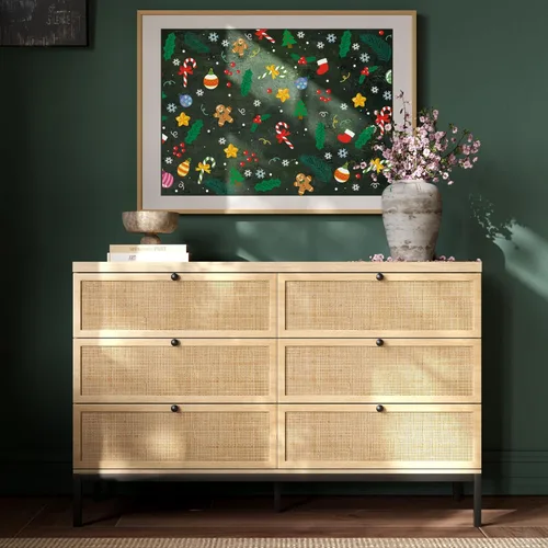 Estilo moderno: las puertas de los cajones de nuestra cómoda de almacenamiento están tejidas a mano con ratán natural indonesio, el acabado de color madera hace que toda la cómoda sea muy natural y limpia, llena de estilo llamativo. Un ajuste anti-vuelco se puede utilizar en varios lugares de forma más segura, el diseño versátil complementa una amplia gama de estilos que van desde el rústico moderno hasta el bohemio, creando un aspecto espacioso para tu hogar. Exquisita artesanía: esta cómoda larga de 6 cajones está hecha de material MDF resistente y ecológico, que garantiza durabilidad y uso duradero, es resistente a los arañazos y al agua, muy fácil de limpiar. Se agrega una placa superior de madera engrosada para acomodar objetos pesados como televisores o jarrones decorativos. La parte inferior de acero mejora aún más la robustez, que puede ser duradera sin deformación. Almacenamiento fuerte y resistente: 6 cajones extraíbles proporcionan un amplio espacio de almacenamiento, cajones espaciosos para adaptarse a ropa, juguetes o mantas. En comparación con la cómoda tradicional no tejida, que es más robusta puede evitar eficazmente que los cajones se deformen, aísla el polvo y el ordenado. La tabla de madera no tiene olor a olor, la ropa se puede mantener fresca incluso después de un largo tiempo de almacenamiento. Múltiples usos: el cajón deslizante de metal suave es fácil de tirar, puedes almacenar una variedad de cosas, nuestro armario se puede colocar en cualquier lugar de la casa que necesite ser almacenado, como la entrada, dormitorio, sala de estar, guardería, mantener el hogar ordenado en cualquier momento. Compra sin preocupaciones: incluye todas las herramientas e instrucciones necesarias, consulta nuestro video de instalación e instrucciones (idioma español no garantizado) para una instalación sin problemas. Si tienes alguna pregunta, no dudes en ponerte en contacto con nuestro equipo profesional antes/posventa en cualquier momento, haremos todo lo posible para resolver tus problemas, tu satisfacción es nuestra mayor búsqueda.