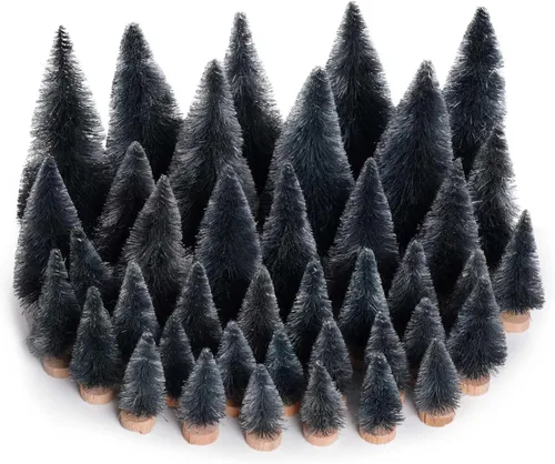 Yookat - 40 mini árboles de pino artificiales con base de madera, árboles de sisal, árboles de pincel de botella en color surtido para decoración de