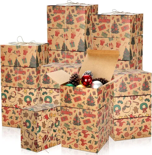 Juego reflexivo: recibirás 24 cajas navideñas con tapas, cada una mide aproximadamente 8 x 8 x 4 pulgadas / 20.3 x 20.3 x 11 cm, y está equipada con 1 cuerda de yute de aproximadamente 5.91 pies / 1.8 metros de largo, lo que le permite envolver convenientemente (un total de 24 piezas de cuerdas de yute, aproximadamente 141.73 pies / 43.2 metros de longitud total), el juego reflexivo satisface fácilmente sus necesidades de venta minorista y envoltorios de regalo Diseño alegre de Navidad: las cajas de galletas de regalo de Navidad están diseñadas con 4 diseños navideños creativos y coloridos. Nuestras cajas de regalo de galletas son adecuadas para sus celebraciones navideñas, que pueden traer una atmósfera festiva a su fiesta de Navidad Resistentes a la decoloración y fuertes: estas cajas de regalo vacías están hechas de papel kraft de 300 gramos, con una fuerte capacidad de carga, resistentes y firmes, difíciles de romper o deformar, confiables y reutilizables; Y las impresiones son resistentes a la decoloración y brillantes, delicadas y claras, que pueden brindarte un agradable disfrute visual Fácil de montar y almacenar: nuestras cajas de papel kraft vienen empaquetadas en plano, preplegadas y son bastante fáciles de montar; y cuando no las necesites, se pueden aplanar, listas para ser almacenadas para la próxima Navidad Amplia Aplicación: nuestras cajas de Navidad se pueden utilizar para regalos, obsequios de hospitalidad, fiestas de intercambio de galletas de Navidad, llevar rosquillas, macarons, galletas, pasteles y enviar por correo o regalar a tu familia, compañeros de trabajo, amigos y vecinos y disfrutar de las alegres fiestas con ellos