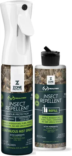 Zone Realtree Picaridin - Repelente de insectos – Fórmula de cazador, espray continuo de 10 onzas + repuesto de 8 onzas, sin DEET, sin perfume y sin