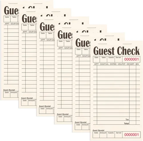 Gran valor: cada paquete viene con 6 blocs de notas de servidor, 300 hojas de boletos en total. Cada almohadilla incluye 50 boletos de pedido encuadernado. El tamaño de la almohadilla es de 6.75 x 3.5 pulgadas. Diseño profesional: cada hoja está diseñada con línea punteada perforada. Es muy fácil de arrancar. Hemos proporcionado filas adicionales en la parte posterior para un registro adicional. Registre información importante: Cada hoja tiene un número de serie único en la parte superior para reducir los errores. Y es fácil registrar información importante como fecha, detalles del pedido, número de invitados, cantidad de pedido, número de mesa, etc. Trabajo práctico: accesorio indispensable para que los servidores organicen tareas, creen listas de compras de comestibles, listas de tareas pendientes, tomen pedidos. Perfecto para libros de servicio y bolsillos de delantal. Contáctenos: Estamos seguros de que la calidad de los blocs de notas del servidor irá más allá de sus expectativas. Si experimenta un problema, póngase en contacto con nosotros, le agradeceremos aprender de su experiencia y lo mejoraremos.